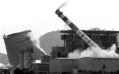 胶东在线网消息 “10、9……3、2、1,爆破!”随着现场爆破总指挥的一声令下,27日下午15时17分,烟台发电厂一发电机组烟囱在5秒钟内爆破拆除。然而,本次爆破却出现了失误,爆破后的烟囱向南倾倒,砸倒发电厂南面...
