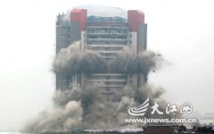 大江网讯 记者时雨摄影报道: 2月6日下午15时50分,随着一道电光闪过,紧接着“轰隆”一声巨响,高85.7米,面积为2.81万平方米,三面临湖的南昌五湖大酒店——这个南昌曾经的地标性建筑被600公斤炸药爆破,淹没在浓...