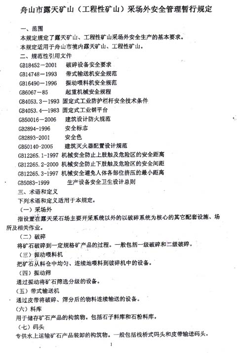 转发《舟山市露天矿山(&金年会官方登录性矿山)采石场外安全管理暂行规定》的通知