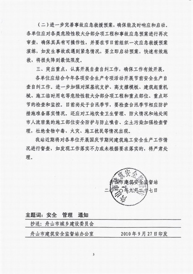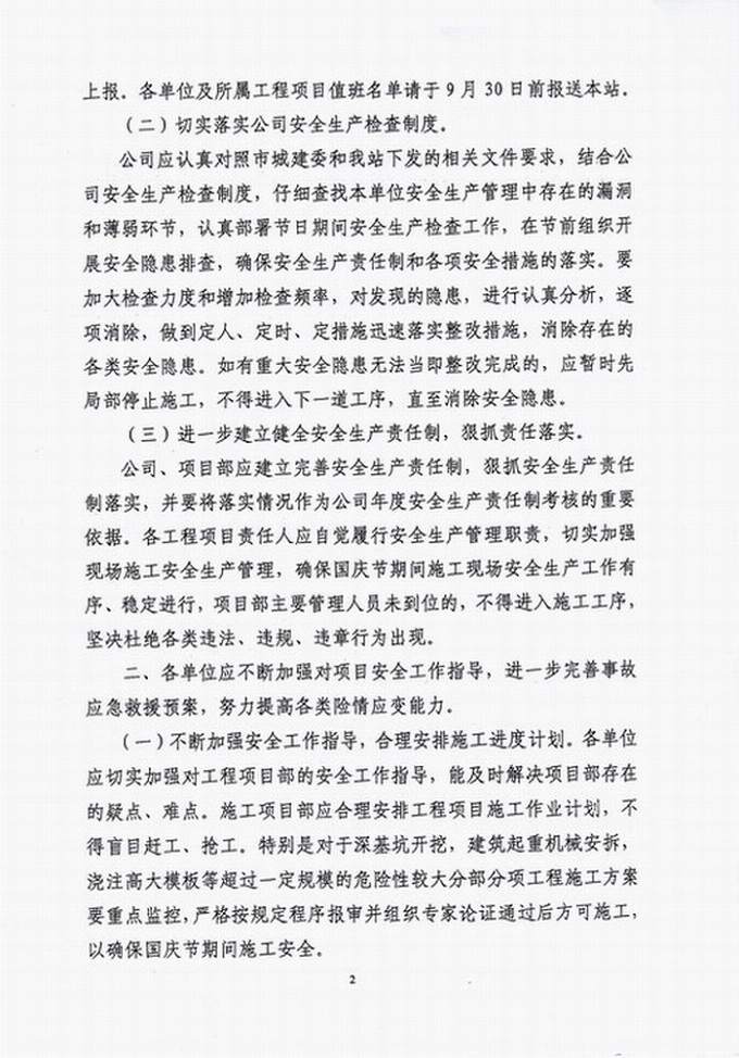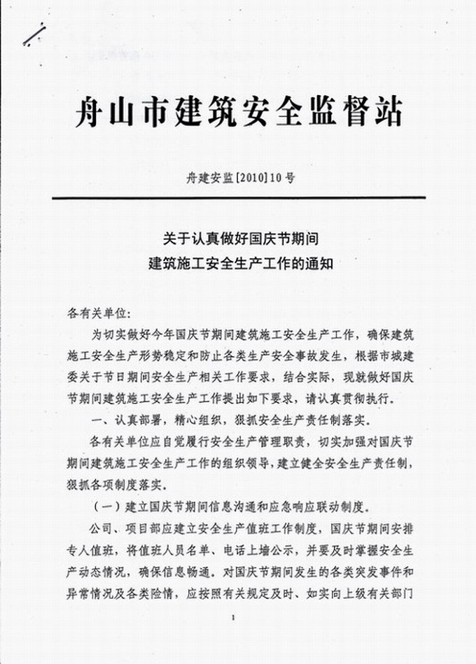 关于认真做好国庆节期间建筑施工安全生产工作的通知