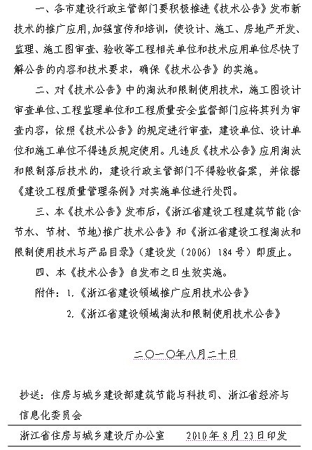 转发省住房和城乡建筑厅关于发布《浙江省建筑领域推广应用技术公告》等通知