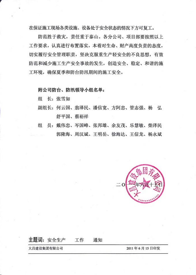 关于做好夏季施工安全生产和防台防汛工作的通知