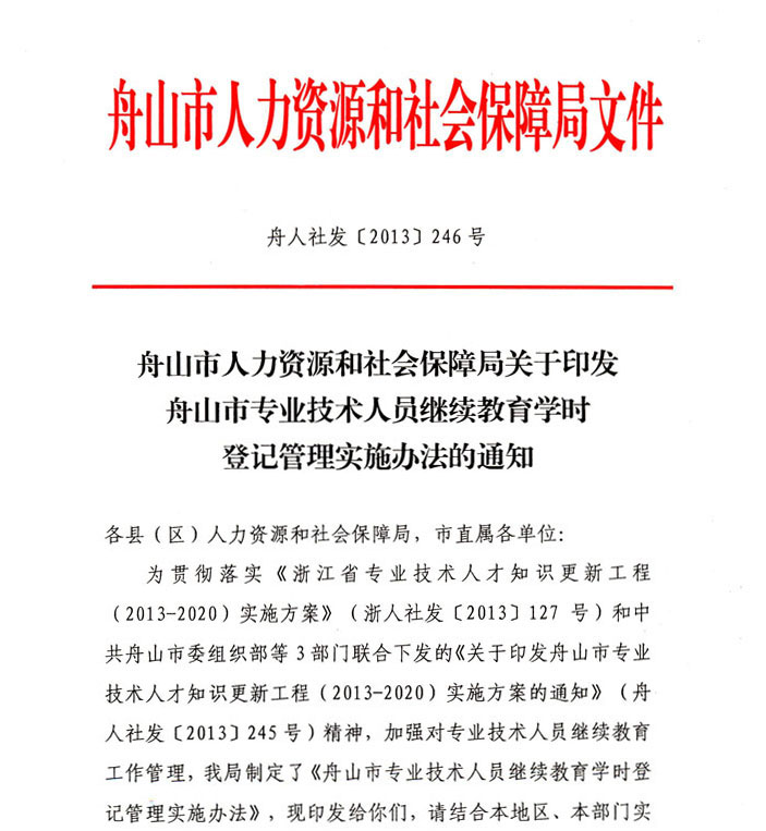 关于舟山市专业技术人员继续教育学时登记管理实施办法的通知