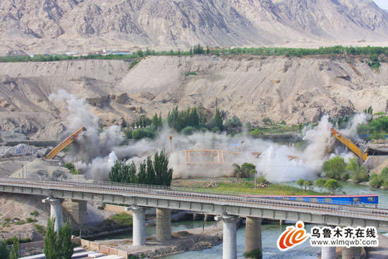 另外,孔雀河大桥爆破后距大桥300米区域内各项工作正常开展,交通秩序恢复正常。孔雀河大桥爆破后后期机器拆除与河床段的清碴工作同步施工。