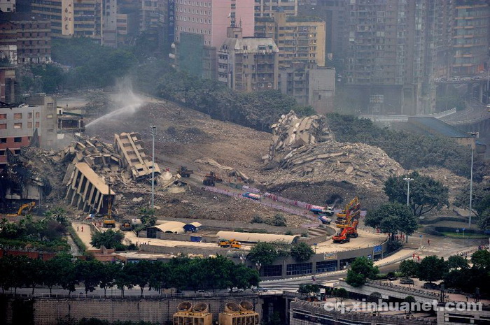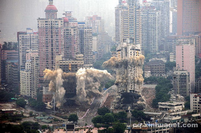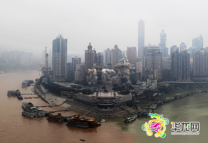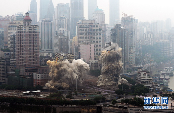 8月30日,重庆港客运大楼和三峡宾馆被爆破拆除,瞬间化为瓦砾。这两幢重庆朝天门地标性建筑正式谢幕,取而代之的将是一座出资210亿元人民币的现代化城市综合体“朝天扬帆”。朝天门是长江、嘉陵江的交汇处,是重庆一大地标。矗立于朝天门广场上的32层高楼“重庆港客运大楼”形如桅杆,紧邻其侧的便是“三峡宾馆”,这两栋建筑和朝天门码头构成了海内外游客对重庆的最初印象。