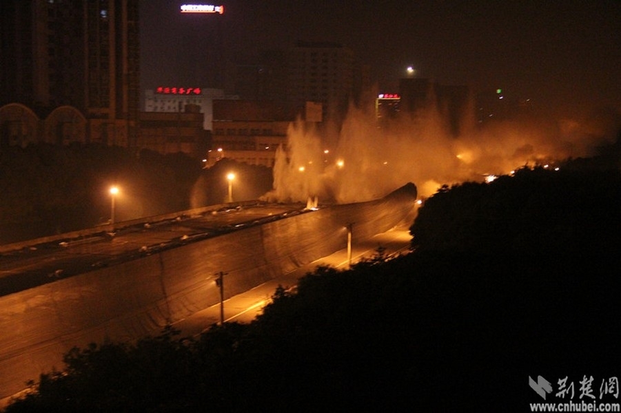22时01分,现场总指挥、武汉市经济技术开发区管委会主任李忠宣布:沌阳高架桥成功实施爆破拆除。