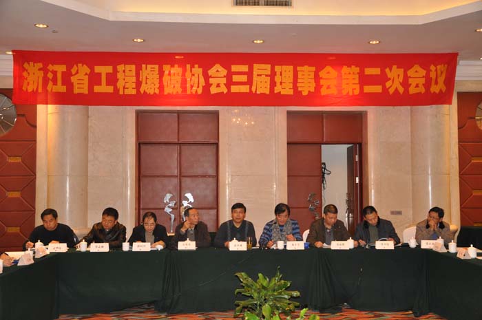 新年伊始,万象更新。2013年12月31日,在杭州红楼大酒店隆重召开了浙江省&金年会官方登录爆破协会三届理事会第二次会议暨协会成立十周年大会,会议由洪卫良秘书长主持。应邀出席大会的还有协会第一届理事会理事长秦兆虎、副理事长王喜林等历届理事长、副理事长、秘书长、副秘书长共18人。特别邀请省公安厅治安总队韩丰平副总队长、省公安厅治安总队二科孟华伟科长出席会议, 韩副总队长作了重要讲话。