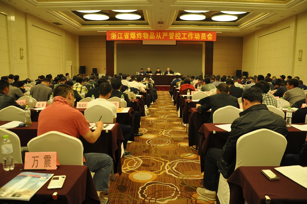 4月7日下午,全省爆炸物品从严管控工作动员会在杭州召开。会议有两大主题:一是深入宣传贯彻公安部《民用爆炸物品从严管控十条规定》,二是动员部署G20杭州国际峰会民用爆炸物品安全从严管控工作措施。全省153家营业性爆破作业单位的主要负责人、安全保卫负责人逾三百人参加了本次动员会。浙江省公安厅治安总队盛洪卫副总队长、危管支队周卫华调研员和协会孟昭运理事长出席了会议并讲话,厉建华秘书长主持了会议。