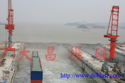 2009119上午10点,浙江东邦修造船有限公司30+10万吨船坞围堰成功爆破拆除。该围堰长约220,围堰体量约8万立方米。爆破点距最近需保护混凝土坞墩约1,属A级爆破。