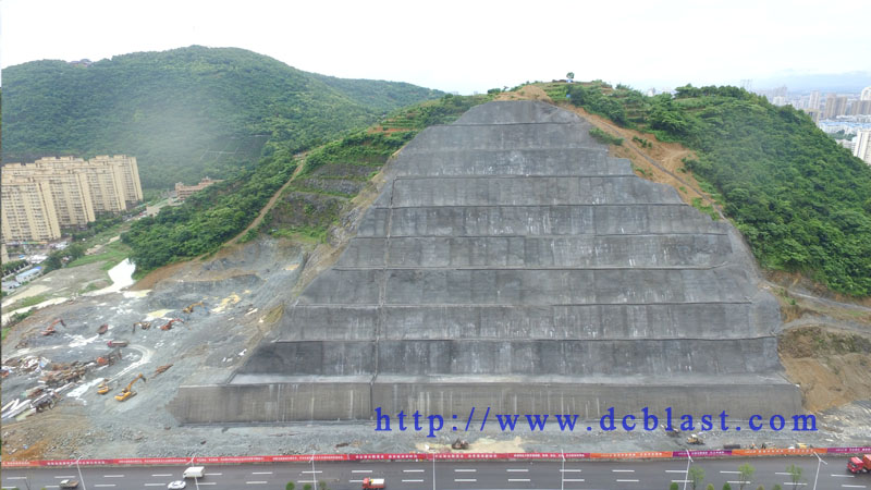 我司成功完成了削破、挂网喷射混凝土、被动防护网、绿化等的任务,经治理后,不仅消除了地脉灾害的威胁,而且建成后的该段瑞枫大道,由24米拓宽至70米,为双向六车道,通行能力由每小时800辆提高到2300辆,极大缓解高速入口段交通拥堵状况。